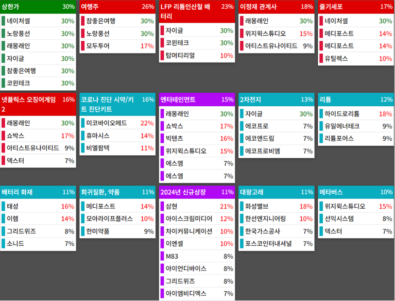 2024년 11월 04일(월) 테마에 따른 종목 상승