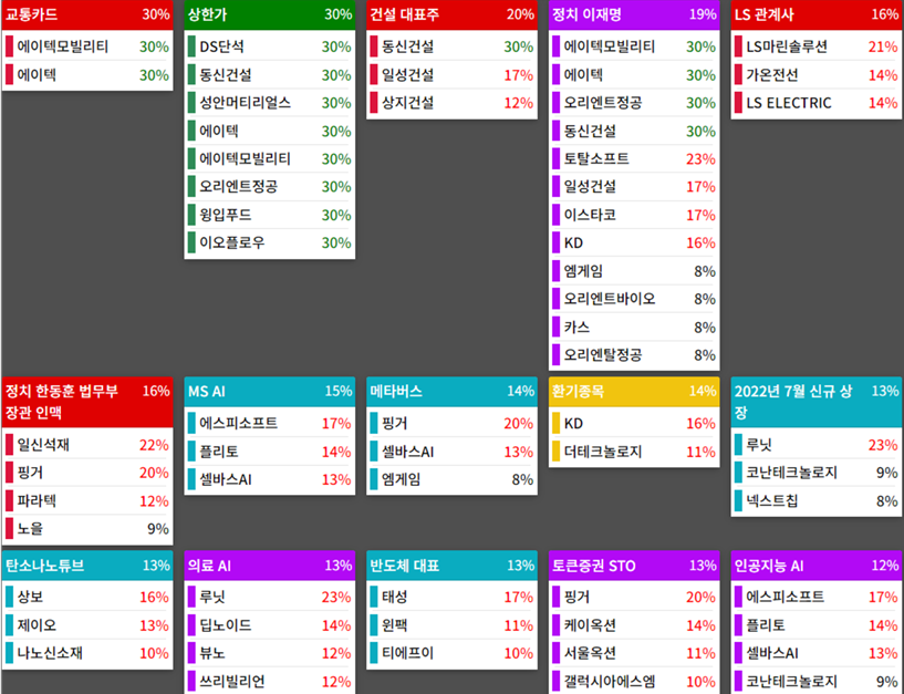 18. 이스타코(16.67%) : 이재명 더불어민주당 대표, 위증교사혐의 1심 무죄 선고 소식에 정치/인맥(이재명) 관련주로 부각되며 급등