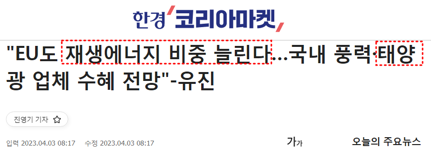 EU가 2030년을 목표로 세운 재생에너지 비중 목표를 달성하려면 재생에너지 전력 비중을 전체의 70%까지 올려야 하는 상황이다. 2021년 기준 EU 재생에너지 비중이 약 22%가량이었던 점을 감안하면 2030년까지 재생에너지 비중을 두 배가량 늘리기로 한 것이다.