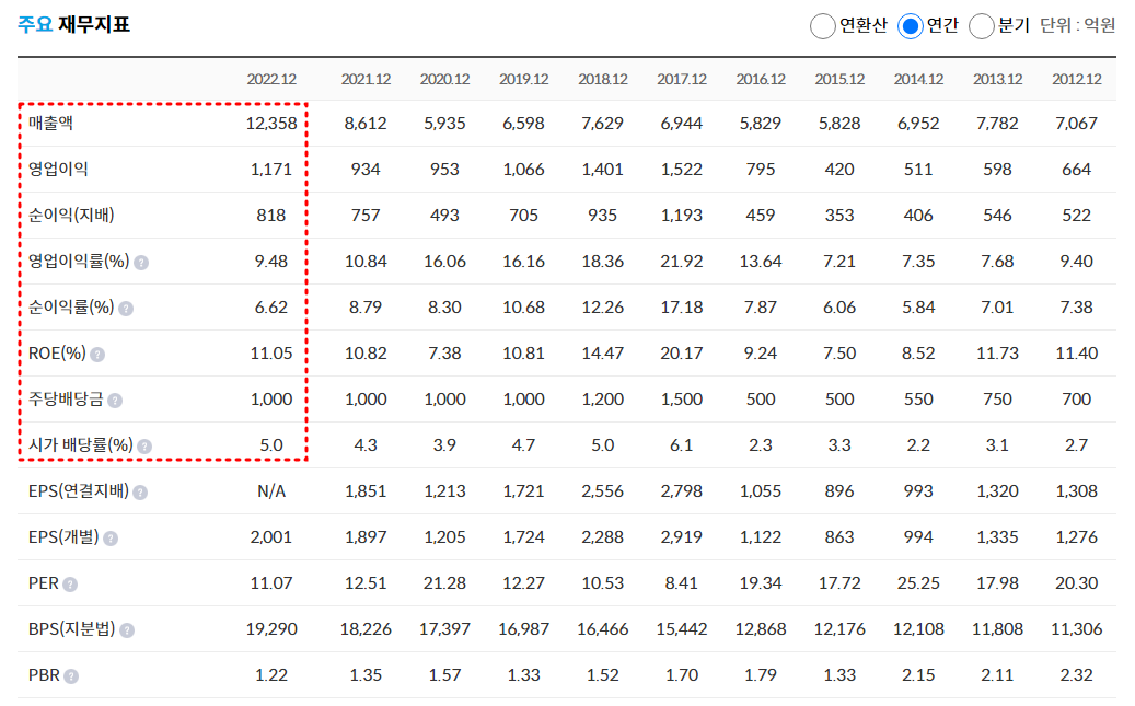 TKG휴켐스는 재무구조도 탄탄하다. 22년도 매출은 전년대비 43.5% 증가하였고, 영업이익의 경우 25.4% 증가, 당기순이익은 5.5% 증가하였다. 작년 당기순이익 기준으로 EPS(주당순이익)가 2,001원정도 이므로 주가가 최근 22,200원 기준 PER(주가수익비율)가 11.09배 가 나온다.
