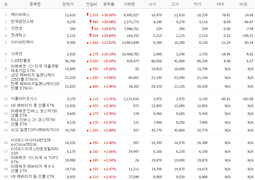 | 24.12.27(금) 금일 상승률Top30 시간외 단일가 특징주 및 주말이슈 (17) | 2024.12.27 |