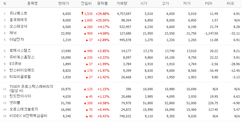갭상승 종목중에서 전일 고가보다 당일 저가가 높은 종목 Top 10 (24.12.30(월) 종가기준)