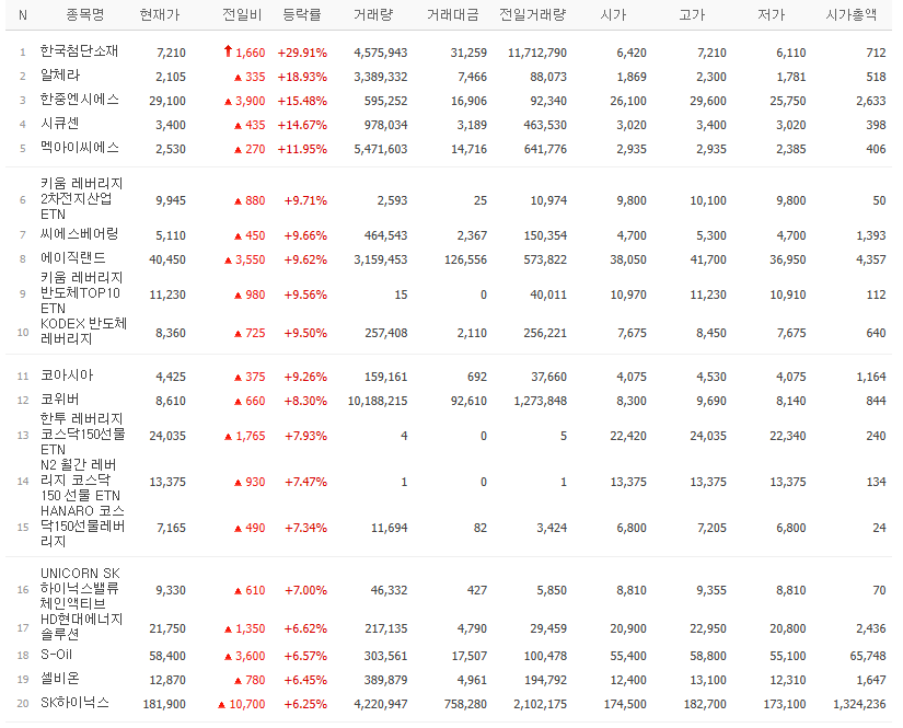 갭상승 종목중에서 전일 고가보다 당일 저가가 높은 종목 Top 20 (25.01.03(금) 종가기준)