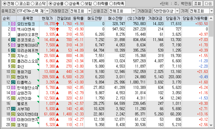 <시간외 상승종목>