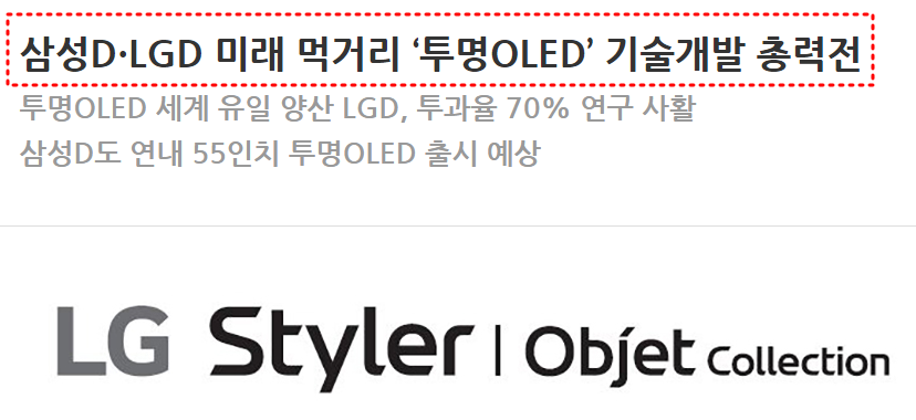 디스플레이 업계 양대 산맥인 삼성디스플레이와 LG디스플레이가 투명OLED(유기발광다이오드)를 미래 먹거리로 낙점하고 이를 상용화하는 기술 개발에 사활을 걸고 있다.