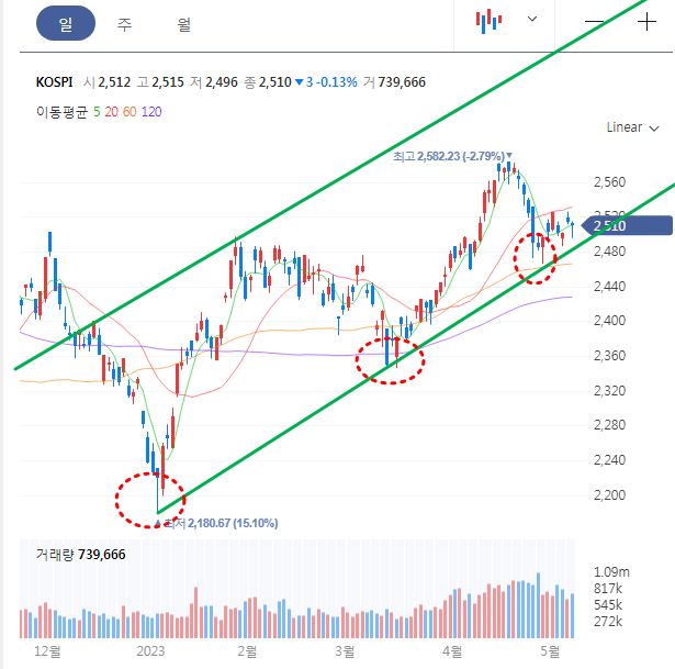 이미 우리나라 증시와 미국 증시는 4월 소비자물가지수(CPI)의 영향을 받아 혼조세가 지속되는 가운데, 금일(5/9) 장중 이탈했던 코스피 2500을 외국인과 기관의 매수세에 힘입어 다시 재탈환하면서 장을 마감하였다.