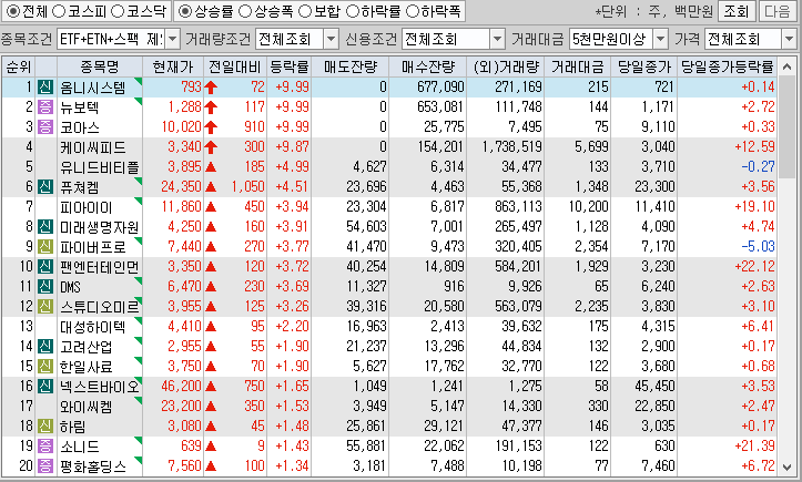 <시간외 상승종목>