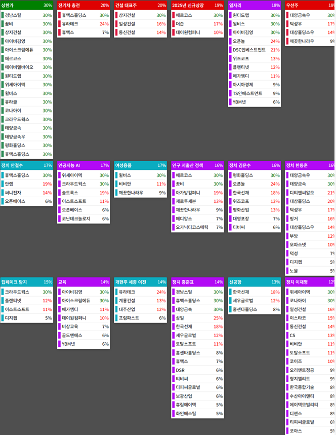 시간외 일부 정치/인맥(이준석) 테마 상승