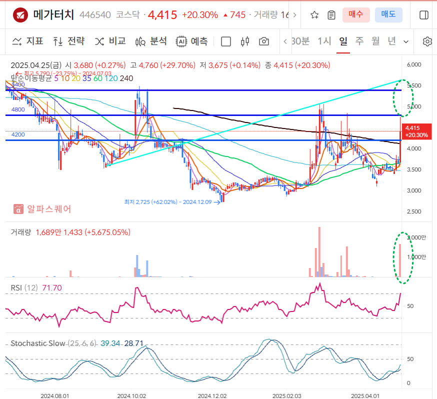 [ 메가터치 일봉차트 ] - 나트륨이온 배터리 관련주 / 전고체배터리 관련주 / 2차전지 관련주 / 반도체 재료(부품) 관련주