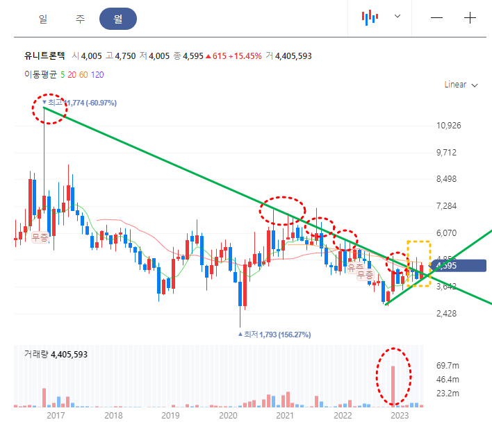 (1) 유니트론텍 월봉 차트분석