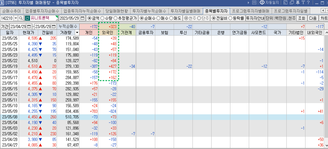 [ 유니트론텍 투자자별 매매동향]