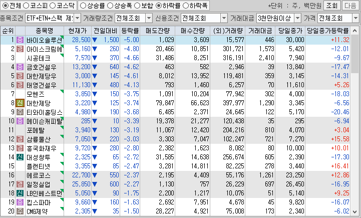 1. 오리엔트바이오(29.99%) : 이재명 파기환송심 첫 재판 대선 이후로 연기 소식 등에 정치/인맥(이재명) 테마 상승 속 상한가