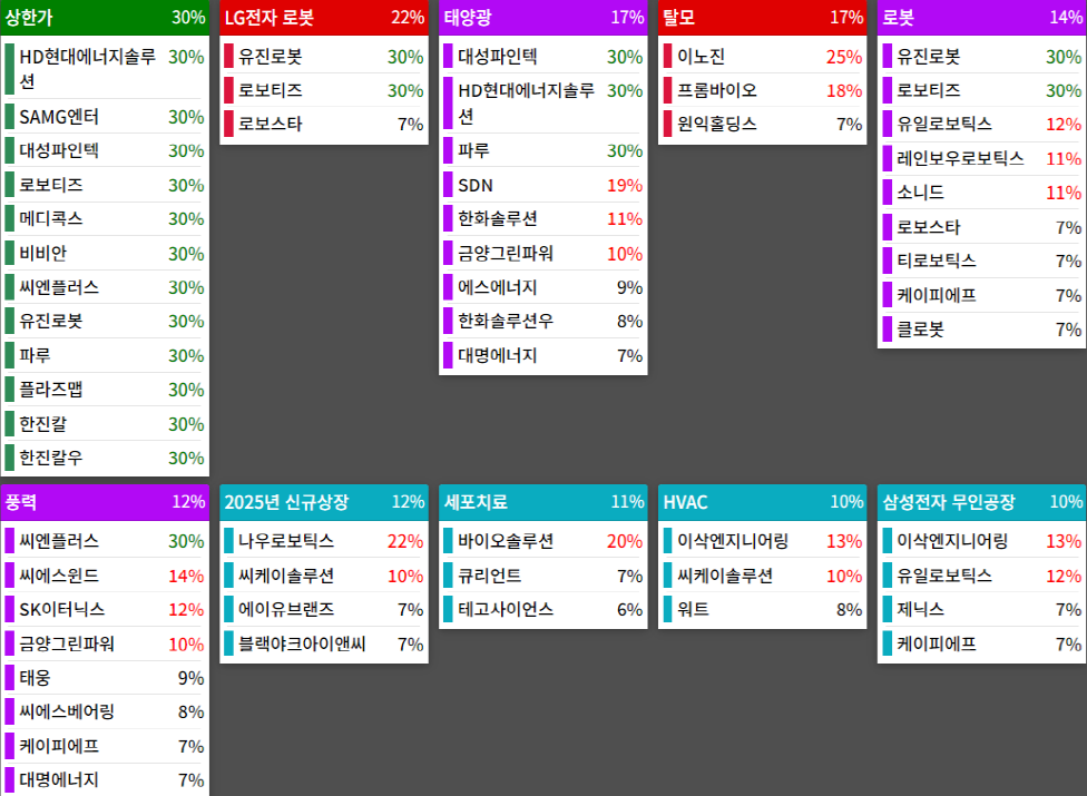 2025년 5월 14일(수) 테마에 따른 종목 상승