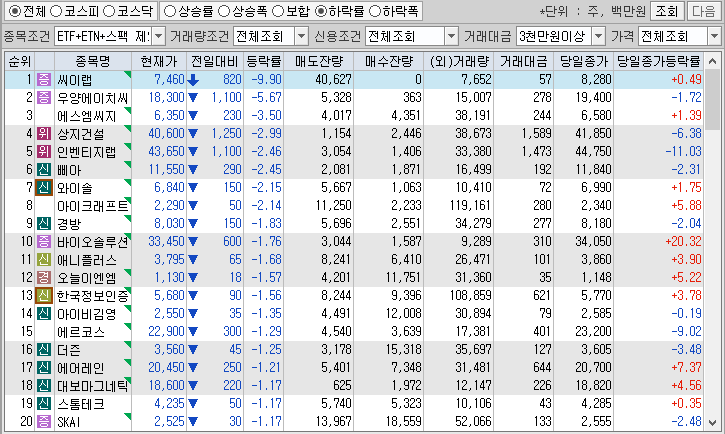 <시간외 하락종목>
