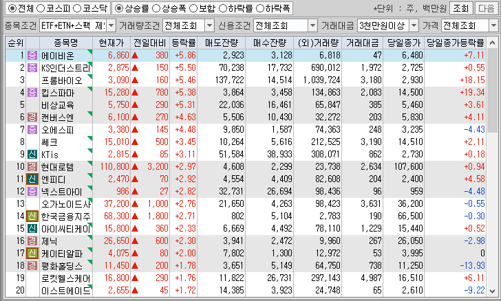 <시간외 상승종목>