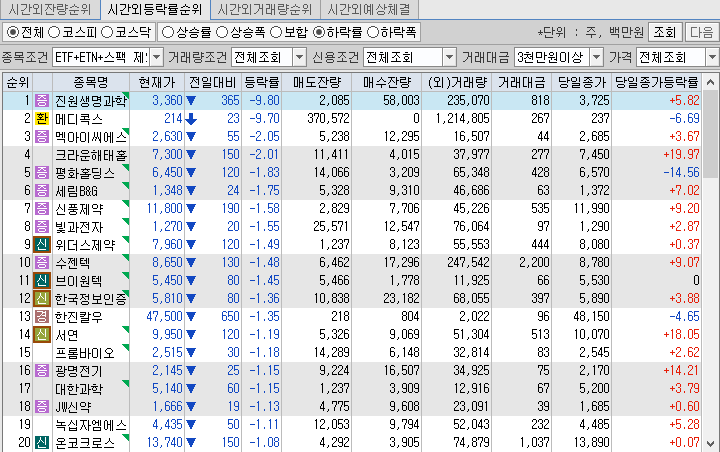<시간외 하락종목>