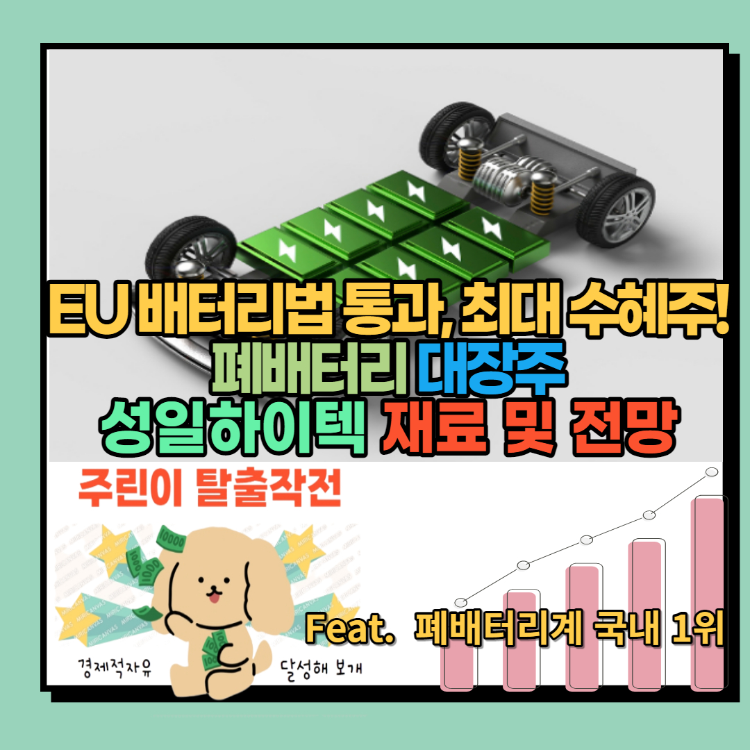 아울러 전기차 배터리 뿐만아니라 휴대폰 및 노트북과 같은 전자기기에 들어있는 폐배터리 리사이클 의무화는 결국 성일하이텍에 날개를 달아주게 될 것이다.