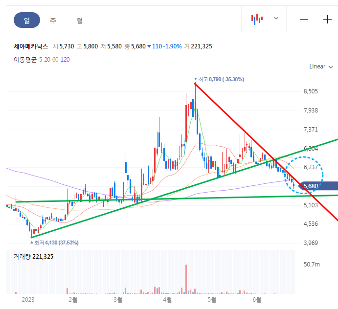 세아메카닉스 일봉 차트