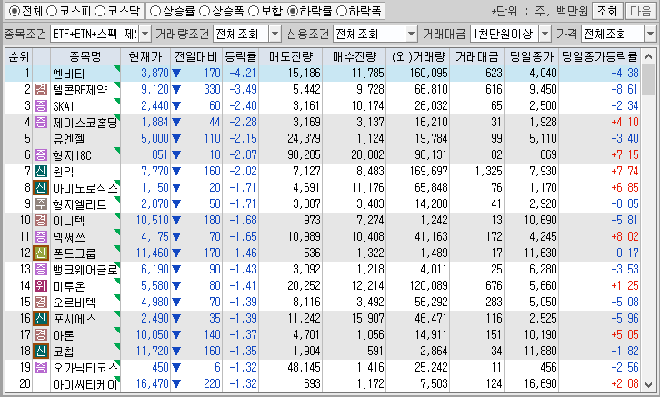 시간외 일부 STO(토큰증권 발행)/핀테크(FinTech)/보안주(정보)/NFT(대체불가토큰) 테마 하락