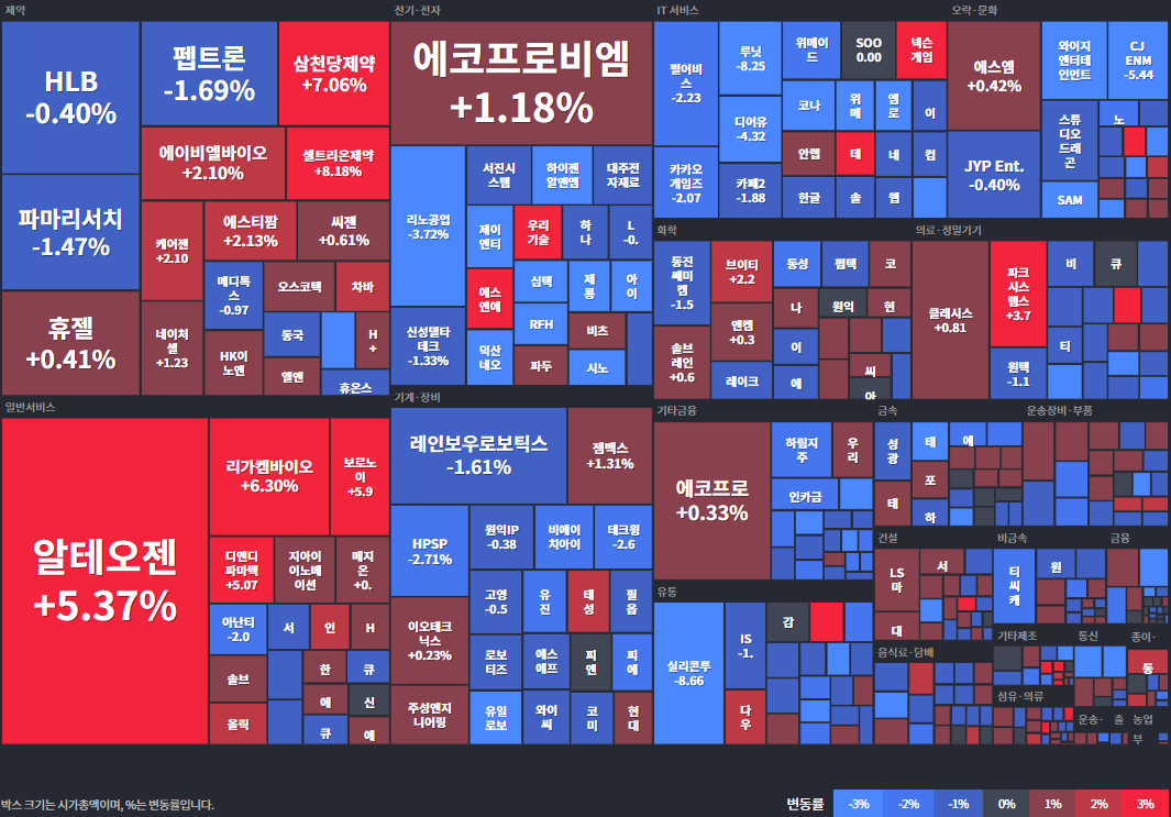 15. 해태제과식품 (12.07%) : 식료품관련주, 전국 대부분 지역 폭염특보 발효 등에 냉동식품 수요 증가 예상 속 폭염관련주로 부각 받으며 급등