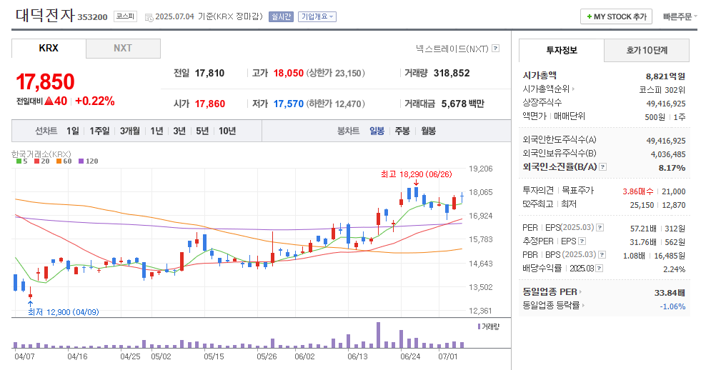 [ 대덕전자 일봉차트] - 온디바이스AI 관련주 / PCB 관련주 / 스마트폰 관련주