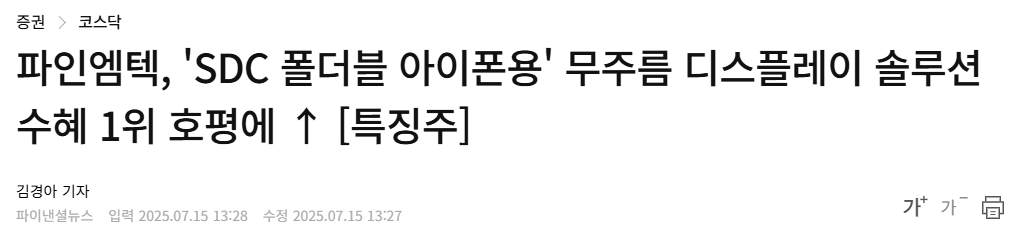 < 25.07.15(화) 금일 핫한 폴더블폰 관련주 및 주요 종목 공시 >