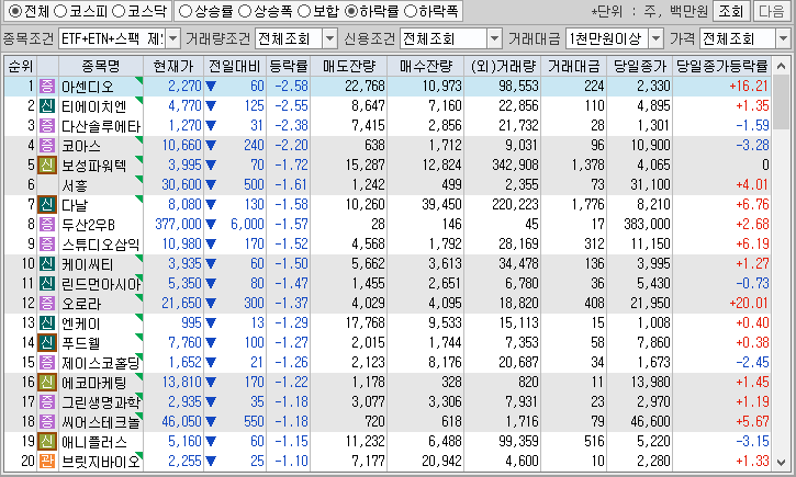 <시간외 하락종목>