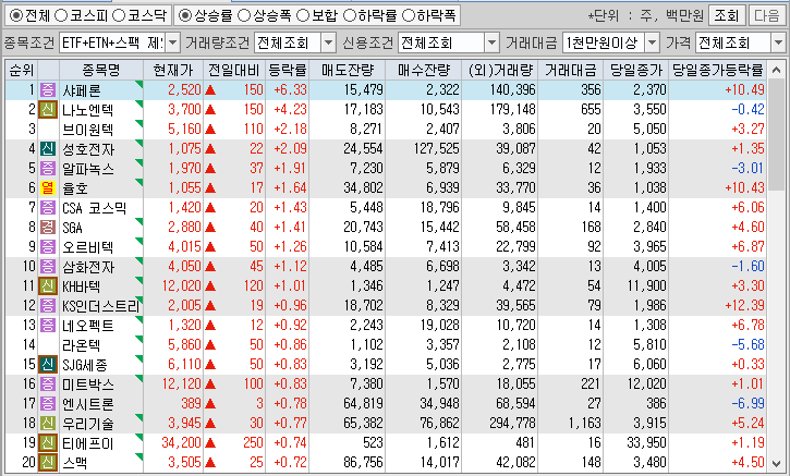 <시간외 상승종목>