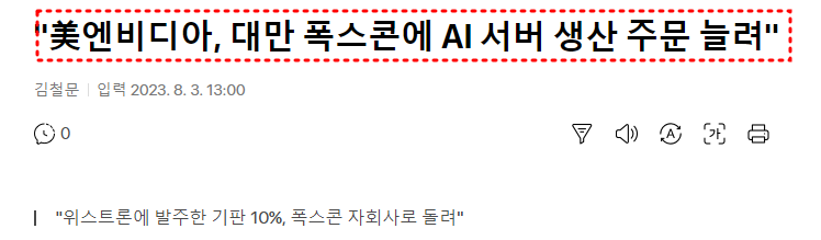 "美엔비디아, 대만 폭스콘에 AI 서버 생산 주문 늘려"