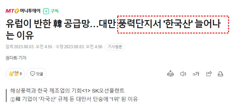 유럽이 반한 韓 공급망…대만 풍력단지서 '한국산' 늘어나는 이유