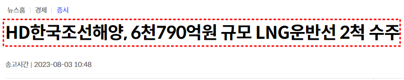 HD한국조선해양은 최근 아프리카 소재 선사와 액화천연가스(LNG) 운반선 2척의 건조 계약을 체결했다고 3일 공시했다. 총수주 금액은 약 6천790억원이다. 이번에 수주한 LNG운반선은 17만4천㎥(입방미터)급이며, 울산 HD현대중공업에서 건조해 2027년 11월까지 선주사에 순차적으로 인도할 예정이다.