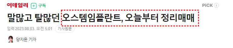 말많고 탈많던 오스템임플란트, 오늘부터 정리매매