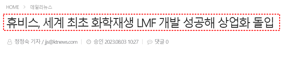 휴비스, 세계 최초 화학재생 LMF 개발 성공해 상업화 돌입