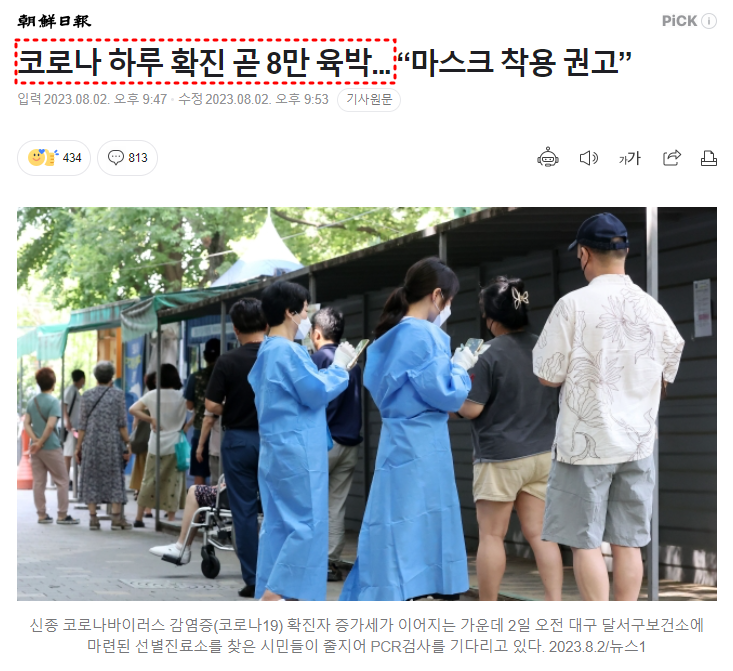 코로나 신규 확진자가 5주 연속 증가세를 보이면서 8월 중순엔 확진자가 하루 평균 6만명, 하루 최대 7만6000명쯤에 이를 것으로 방역 당국이 전망했다.