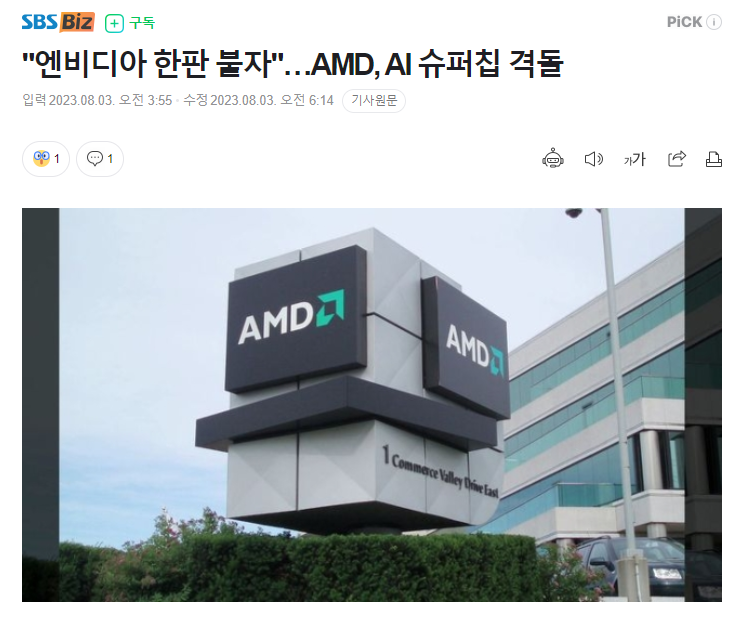 미국 반도체기업 AMD가 새로운 인공지능(AI)용 '슈퍼칩'을 앞세워 시장 선두 엔비디아와 본격적으로 격돌할 전망이다. 2일(현지시간) 로이터통신 등 주요 외신에 따르면 AMD는 올해 4분기부터 MI300 AI칩 생산을 확대할 예정이다.