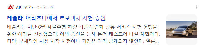 마침 테슬라가 미국 애리조나주에서 자율주행 로보택시 시험 운행 승인을 받았다는 소식이 주말에 등장했고,