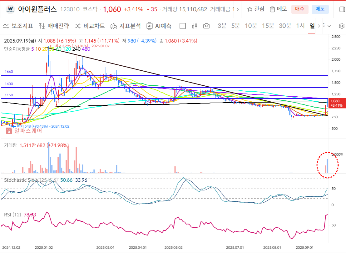 아울러 9월18일(목)에 발생한 거래대금을 보면 당일 거래대금만 1,518억이상 발생했는데, 이는 한싹 시총(743억)의 2배 이상이나 발생했기에 시장에서 뜨거운 관심을 가지고 있다고 볼 수 있어 지속 체크가 필요하다.