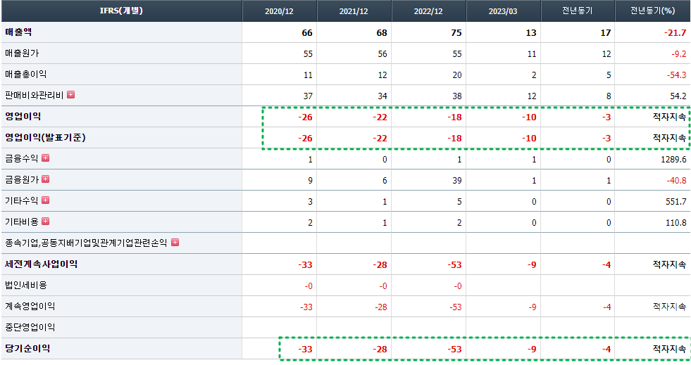 에스비비테크는 기술 특례로 인해 코스닥 시장에 상장하여 기술력 측면이 인정받고 있으나, 이렇게 매년 적자를 기록 중이라 실적은 상당히 부진한 상황이다.
