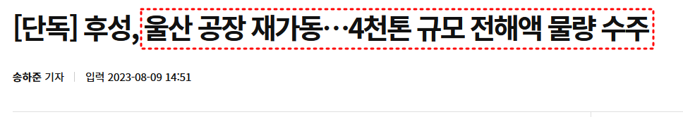 [ 후성, 울산 공장 재가동…4천톤 규모 전해액 물량 수주 ]