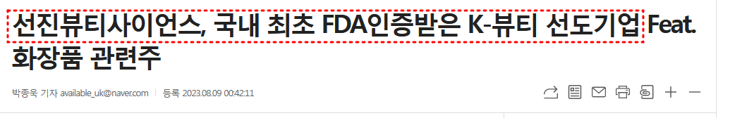 [ 선진뷰티사이언스, 국내 최초 FDA인증받은 K-뷰티 선도기업 Feat. 화장품 관련주 ]