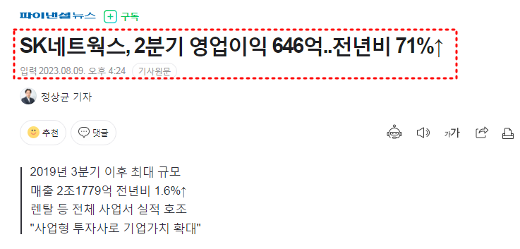 [ SK네트웍스, 2분기 영업이익 646억..전년비 71%↑ ]