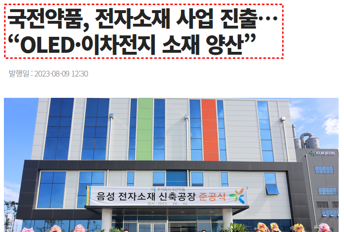 [ 국전약품, 전자소재 사업 진출…“OLED·이차전지 소재 양산” ]