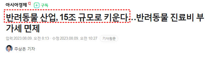 [ 반려동물 산업, 15조 규모로 키운다…반려동물 진료비 부가세 면제 ]
