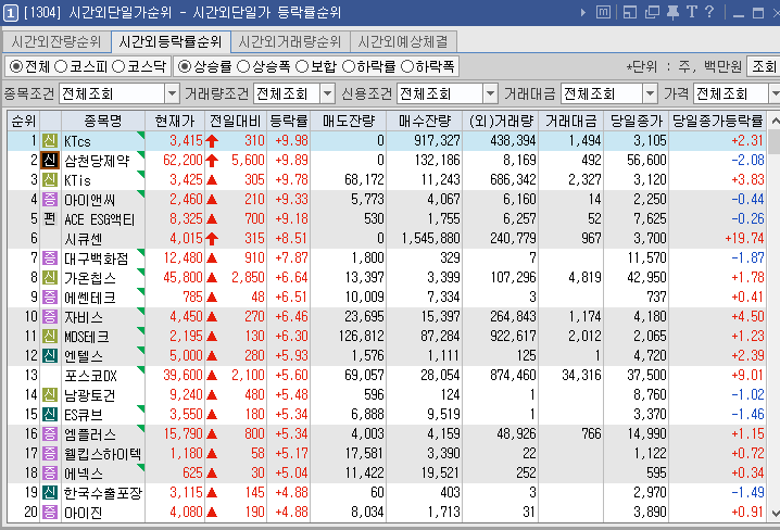 2023년8월23일(수) 시간외 단일가 특이종목