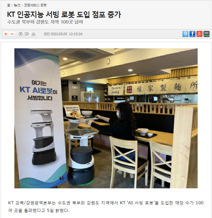서빙하는 로봇들이 많이 증가했다는 것을 볼 수 있다.