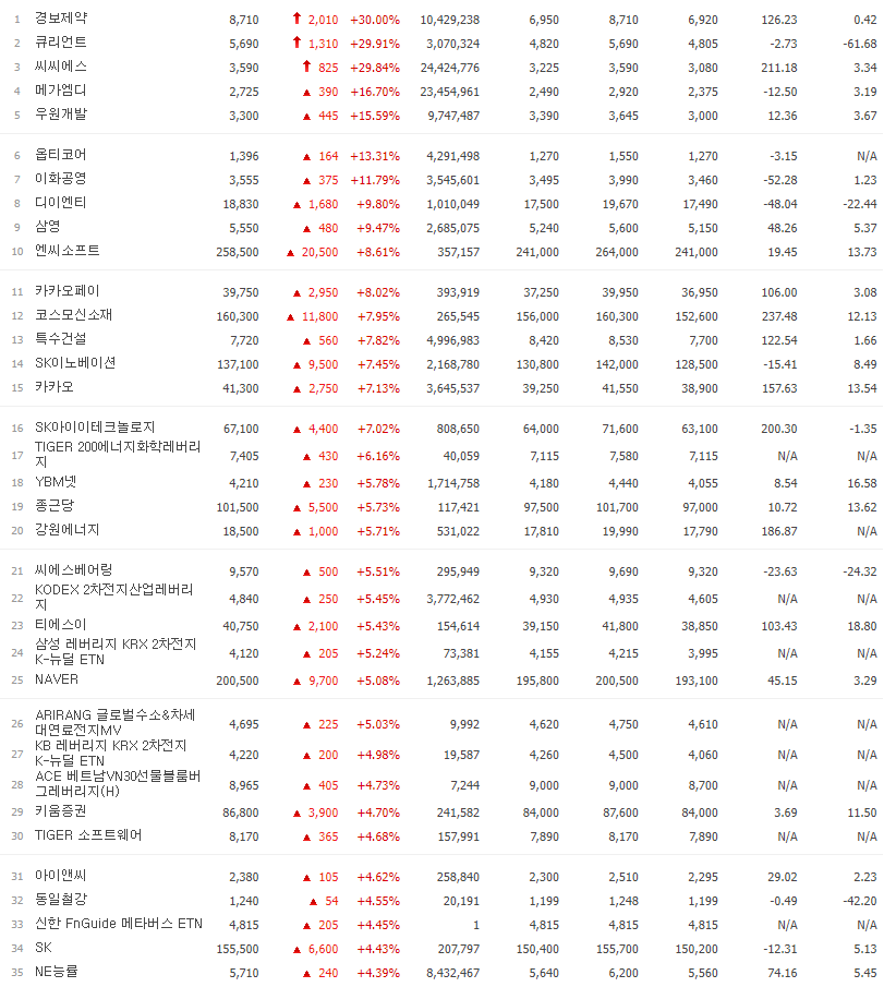 에코프로비엠(247540)+3.04% 美 주요 전기차 업체 주가 강세, SK온실적 선방, 공매도 일시 중단 발표 기대감 등에 시간외 2차전지 테마 상승