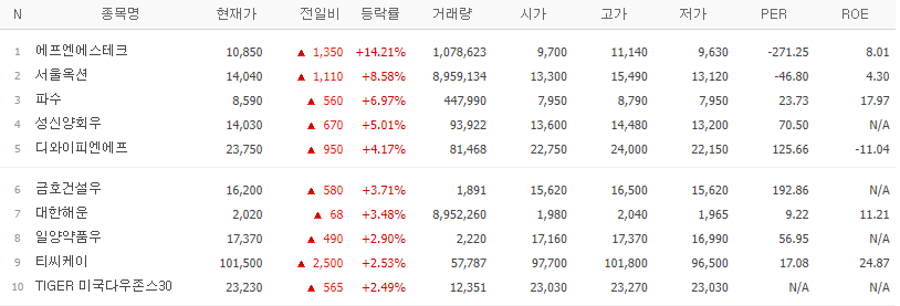 | 종목명 | 등락률(%) | 특이사항 |