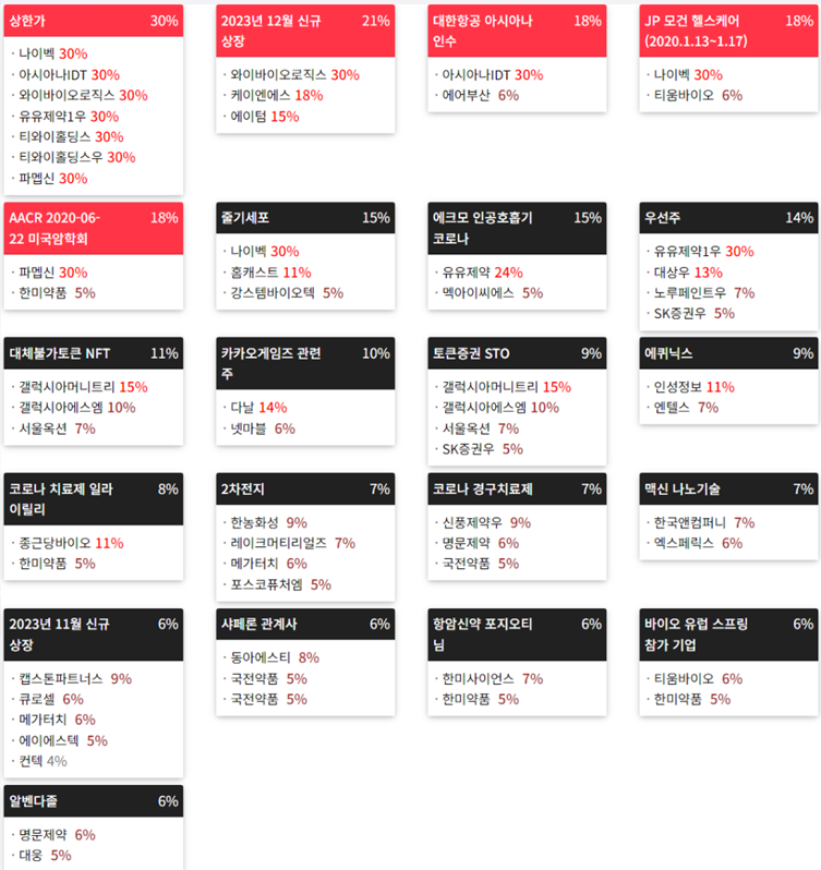 2023년12월 07일(목) 테마에 따른 종목 상승