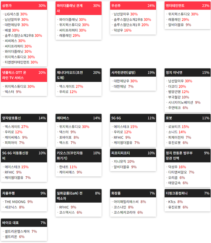 2023년12월 11일(월) 테마에 따른 종목 상승