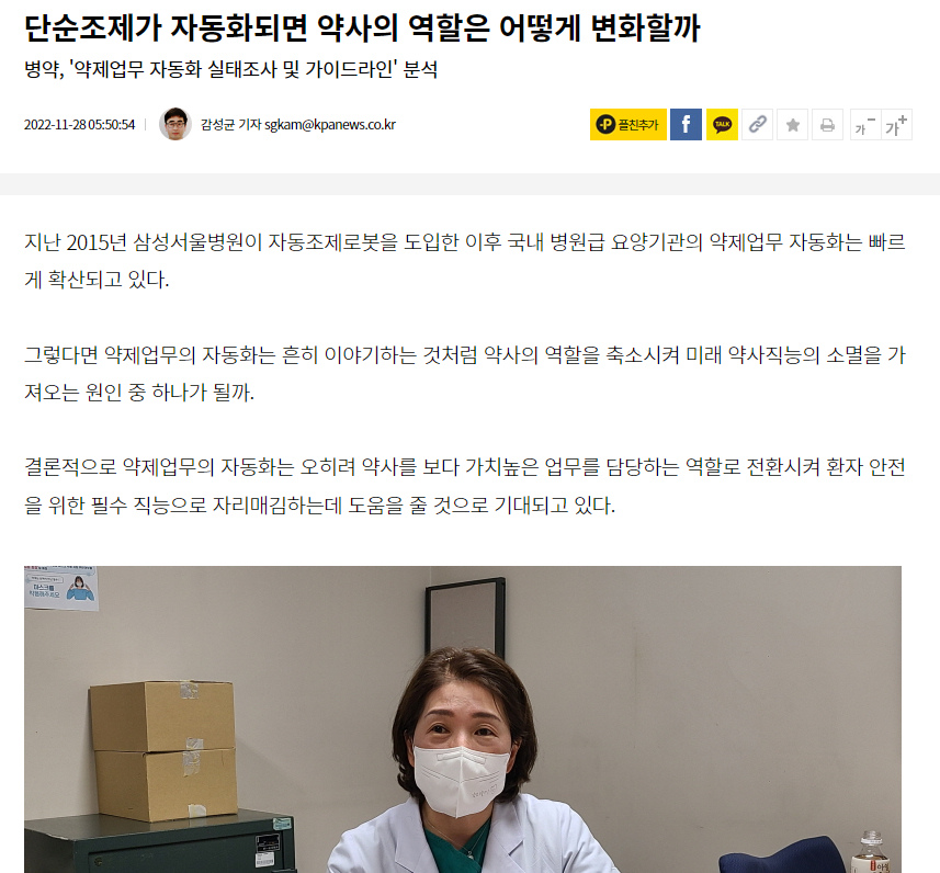 단순조제가 자동화되면 약사의 역할은 어떻게 변화할까 | 약사공론